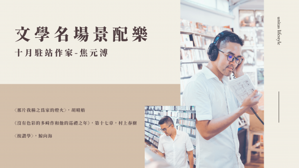 文本與音樂的距離有多遠?聯合文學unitas生活誌「十月駐站作家—焦元溥」藉由系列文章,不斷梳理音樂、人和文本的關係。「閱讀文學名場景」選擇三部當代文學作品,請焦元溥以配樂重新詮釋文字。有些歌我們還不認識,有些作品我們始終記得,2019 的秋天,一起聽一首歌、讀一段字,重新認識那些作品 ——