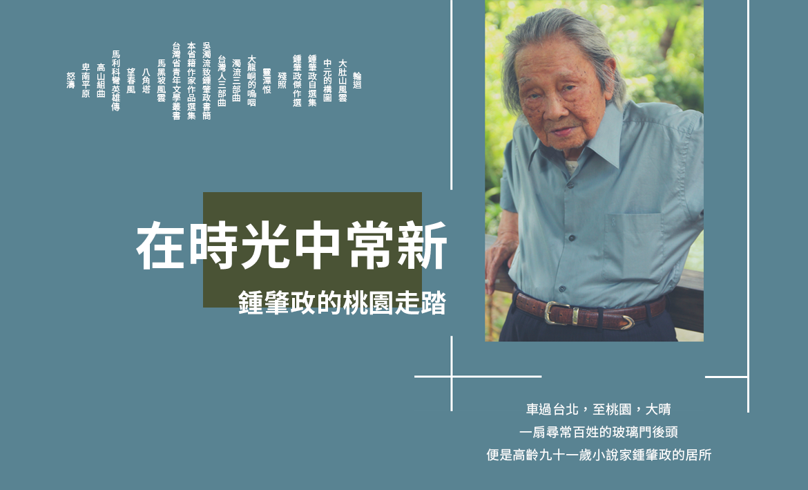 車過台北,至桃園,大晴。一扇尋常百姓的玻璃門後頭,便是高齡九十一歲小說家鍾肇政的居所。