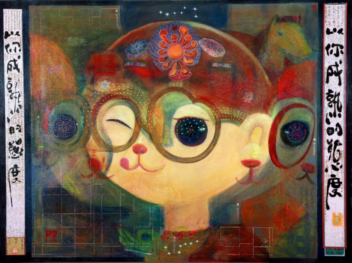 融合東方文化符號,中國書畫的語言(隔水,印章,題記),與傳統技法(瀝粉貼金),完成全然當代的作品。