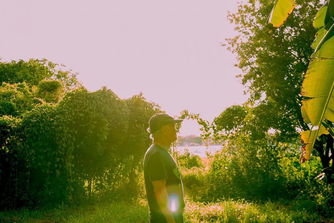 純園的入口處,有一條林陰拱手相簇而成的廊道,吳晟老師為我們領路往耕地走去,和《他還年輕》紀錄片一樣,步伐從容而持重,沿路介紹樟樹、毛柿和烏心石等植物,逐一詳述之後,原本綠意朦朧的風景畫,每道筆觸與色澤被重新點亮,才察覺到自己已橫渡影像與詩作,此刻真正踏入純園。走到稻米田,攝影師希望捕捉吳晟老師佇立田間的特寫,他走往水圳上狹小的通道,我們下意識喊聲:「小心」,說完後才自覺多餘,此空間的寬窄和土地的鬆軟,吳晟老師已用日復一日的生命去認讀,去領略。