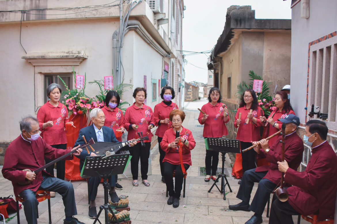 洪天映老先生帶領烈嶼鄉親彈奏的南管樂音既懷古又幽揚,其韻角未歇,作家洪玉芬又領著臺灣文學巡禮的夥伴們,踏尋粥面與海面即景,最後以風伴字,洪老爹的古琴又響起。(財團法人聯合文學基金會/圖片提供)