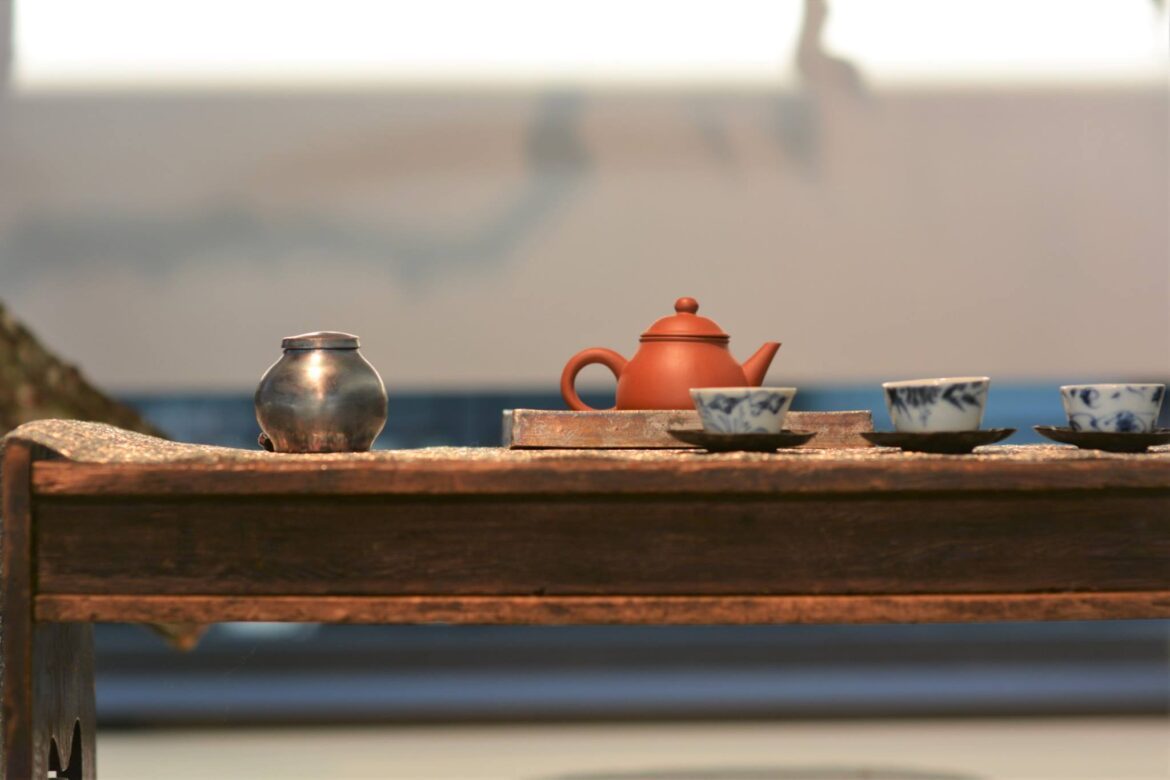 西式下午茶和中式茶席、日式茶道所使用的茶器,因為各地不同的喝茶文化而大異其趣。二○一八年我與新北市立鶯歌陶瓷博物館合作〈紫砂漫遊 聚焦台灣〉特展,就以茶具的擺設並呈了世界主要幾個茶文化系統,如果用「物的言語」及其脈絡來看,也可以是一個明顯直接的案例。上一期《聯合文學》中張惠菁談到川端康成的《千羽鶴》,我們從文學的角度看到小說裡如何使用日本茶道物件作為人物複雜關係的象徵及隱喻,以及對物件生命史的省思(比起人的短暫生命,物件存在更長久,輾轉流落多少不同命運人物之手)。而裡面描述的茶道具物件,包括志野陶茶碗、水罐,以及織部燒茶碗、唐津陶茶碗、樂茶碗等等,不論從風格形式(造形、線條、色彩、裝飾)、質感,到相對價值,也暗示背後一整套的系統脈絡,屬於日本陶瓷史的、日本茶道史的。或許,接下來這個穿越時空的紋飾例子,更能說明物的言語脈絡交織。
