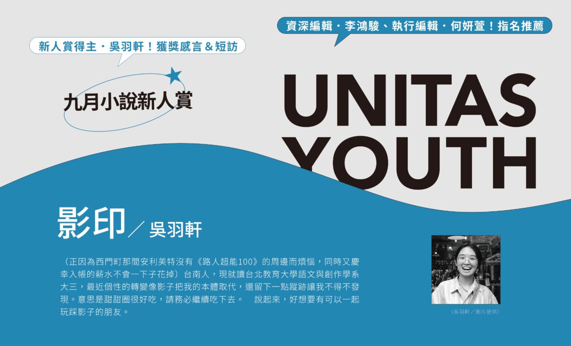 我喜歡〈影印〉裡所有生物,因為太喜歡了,生平第一次拿著作品到處給人看,讓他們讀到笑出來是解鎖成就。謝謝《聯合文學》。謝謝綾野剛讓我開始電影馬拉松。謝謝所有笑出來的人,包括自己。