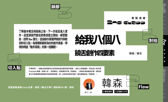 完整3篇實戰演練class文章,請見《聯合文學》雜誌第487期:嘻哈