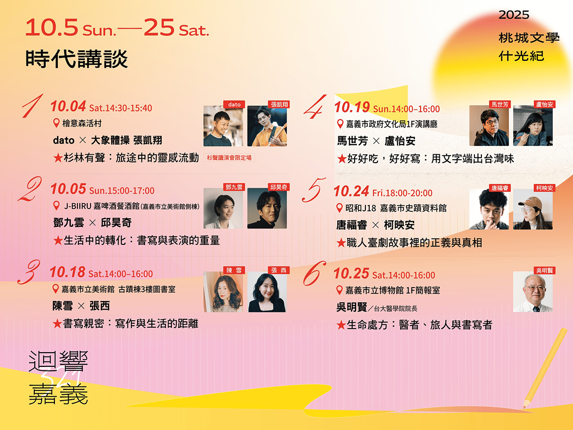 今年中秋連假,從 𝟭𝟬.𝟬𝟰 Sat. 的開幕特別節目「杉聲讀演會」開始,創作者、音樂人與重量級主持齊聚,要帶你走進午後最溫柔的聲音現場✦接下來幾週,我們也邀請不同領域的作家與創作者齊聚,透過面對面的交流,從各種角度帶你重新傾聽土地的聲音,激起時代的共鳴 .ᐟ.ᐟ.ᐟ