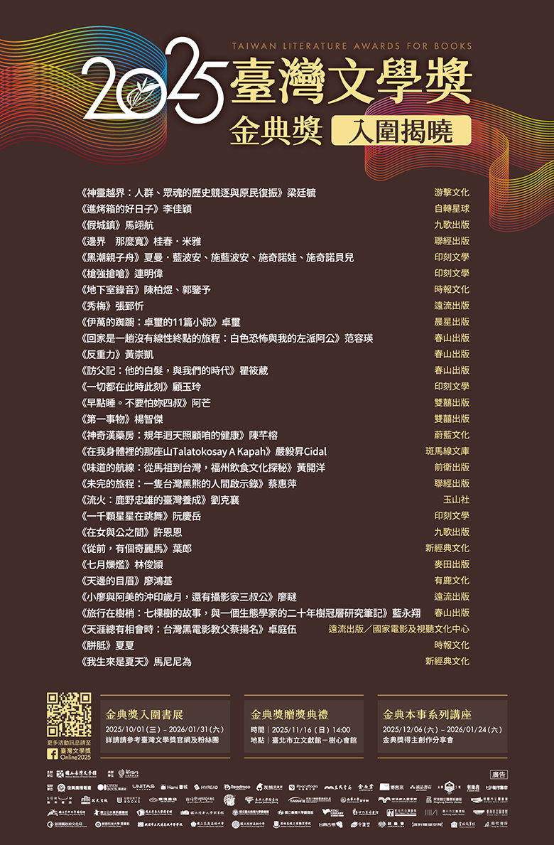 2025臺灣文學獎-金典獎入圍公告-外發使用版(0929)3_0 by 編輯 網路中心 2025-09-30 written by 編輯 網路中心 2025-09-30 102 Leave a Comment Cancel Reply Save my name, email, and website in this browser for the next time I comment. Δ 這個網站採用 Akismet 服務減少垃圾留言。進一步了解 Akismet 如何處理網站訪客的留言資料。