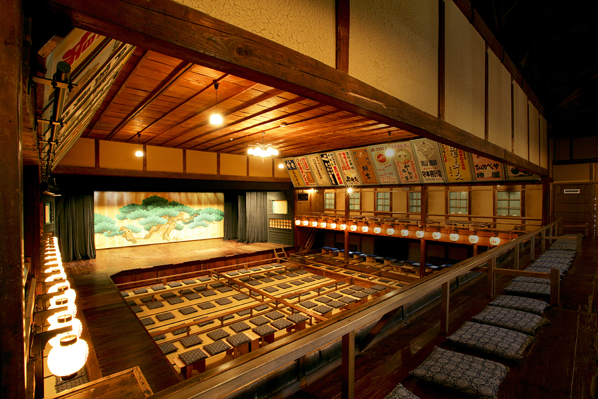 喜久雄與俊介演出《二人藤娘》的舞台,以及後台演員化妝、休息的「樂屋」皆在兵庫縣的出石永樂館拍攝。橫濱流星形容,這是一座「能讓人感受歷史、彷彿穿越時空的空間」。永樂館建於一九〇一年,坐落於出石城下,是近畿地區現存最古老的常設劇場。每當太鼓樓的鼓聲響起,人們就知道「今天有公演」,長年以來見證了歌舞伎的風華。戰後,因電視娛樂興起,永樂館曾一度關閉,但館內仍保持明治時期的模樣,二〇〇八年重新啟用,將百年歷史的戲劇魅力再次呈現於世人面前。