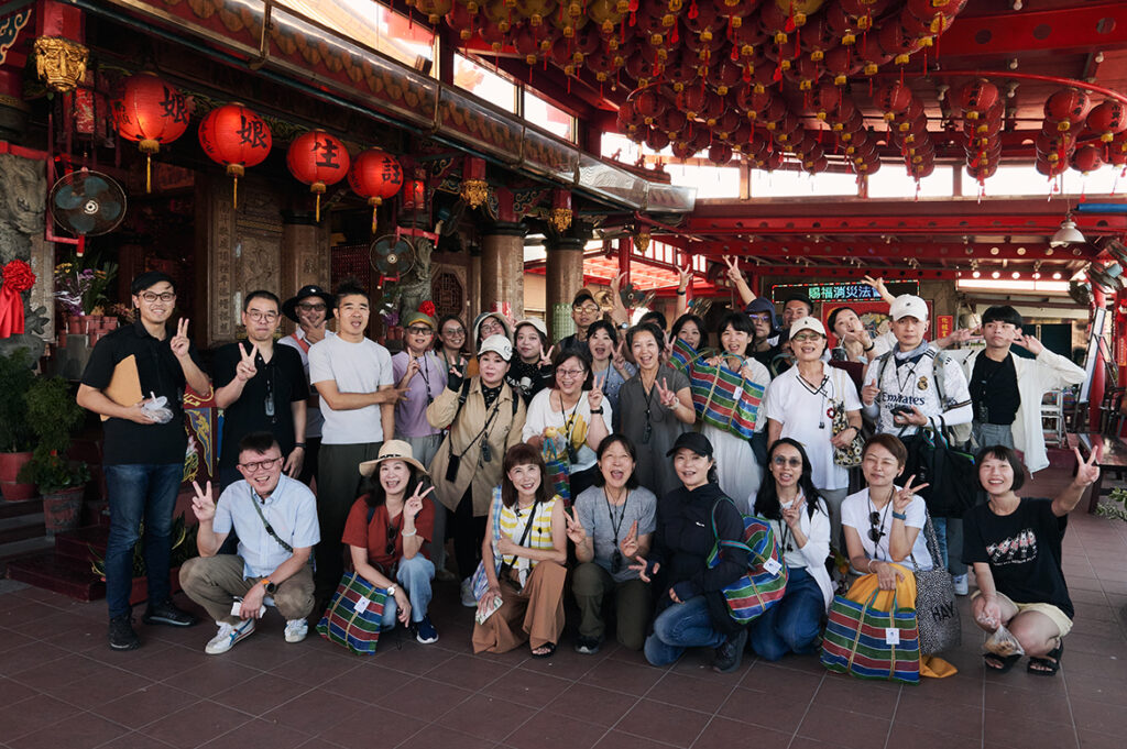 番紅花帶領大家走訪南館市場的特殊風景——頂樓廟宇「南興廟」,一九七九年都市計畫,將原來在市場邊的「南興廟」遷移到新建的南館市場頂樓,以祀註生娘娘為主神,是市民求子的必訪之地,從樓上俯瞰南北館市場和宜蘭市的景致,別有一番風味,大家便在此拜拜、用餐及合影留念。