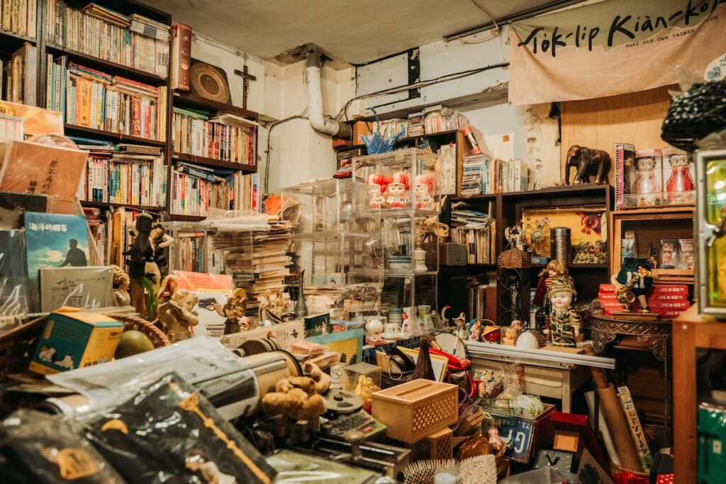 由藝術家潘靜竹與作家潘景新共同創立,已默默耕耘第二十六年。兩人因對臺灣文學的熱愛而結盟,書店也成為推廣台語文化與本土書寫的基地,曾自費發行台語詩報《首都詩報》、編撰書話誌《藏書之愛》,至今仍定期舉辦本土文學講座、台語讀書會。走入地下室,首先會看見那座由鐵架圍起、貼有懷舊海報的「書中屋」,裡頭收納著絕版書刊與絨毛娃娃,用小空間發揮「被書包圍」的巧思。店內藏書海量,從文學詩集、歷史書報、漫畫、繪本、雜誌到攝影集皆有收納,宛如一座民間自發的紙上博物館。除了書店店務以外,潘靜竹每週在「自由之聲」電臺主持節目,持續以另一種方式,推廣台語文化與文學。