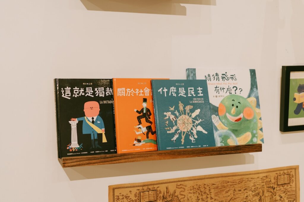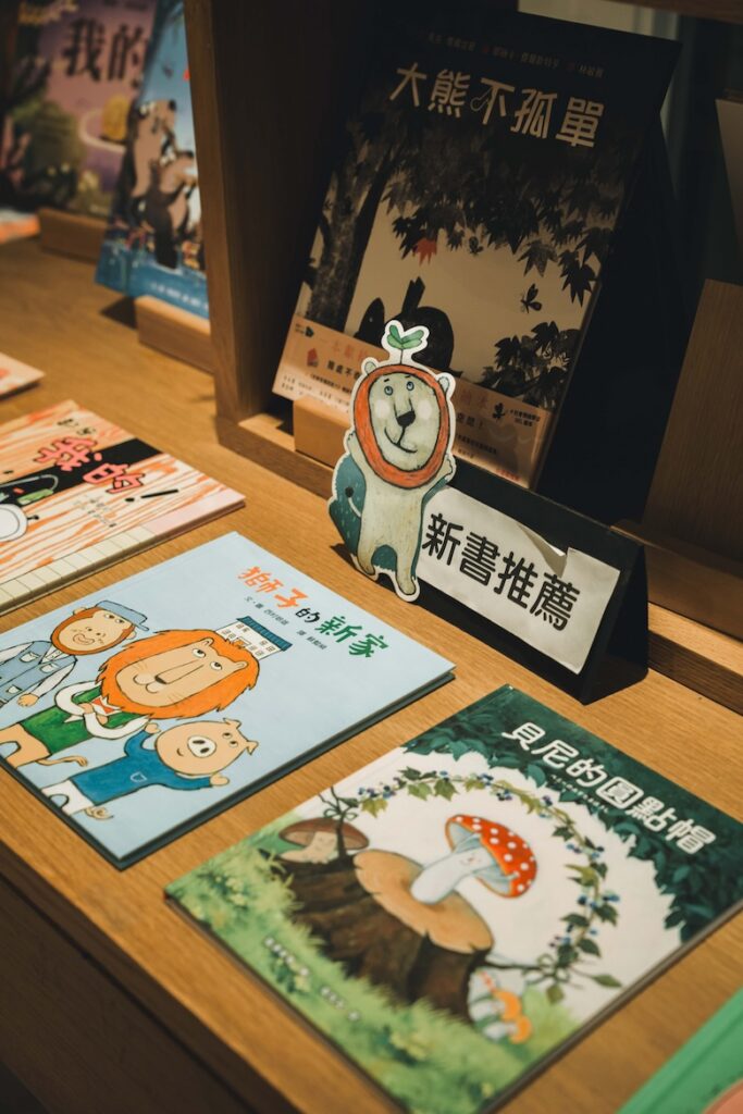 「泥巴球」取自孩子們的遊戲,他們總愛捏握濕潤的泥巴,藏進自己認定的祕密角落。店長張秀卿在新樓幼兒園服務多年,深信「全語文」的教育理念:閱讀與表達的能力,自生命之初便已啟動。工作關係,她從繪本挑選者,到深耕繪本的推動者,最終開立一間專屬於童年的繪本書屋。店內選書避免直白說教的題材,書架上沒有「學專注」、「要分享」等標語式繪本,取而代之的,是細膩描繪情緒、想像與關係的作品。「我們希望孩子能為自己的感受命名,無論是不安或悲傷,都能被接納。」店長說道。