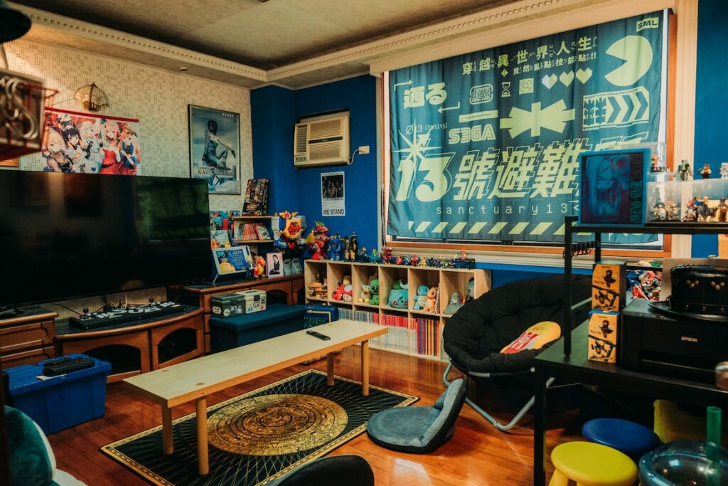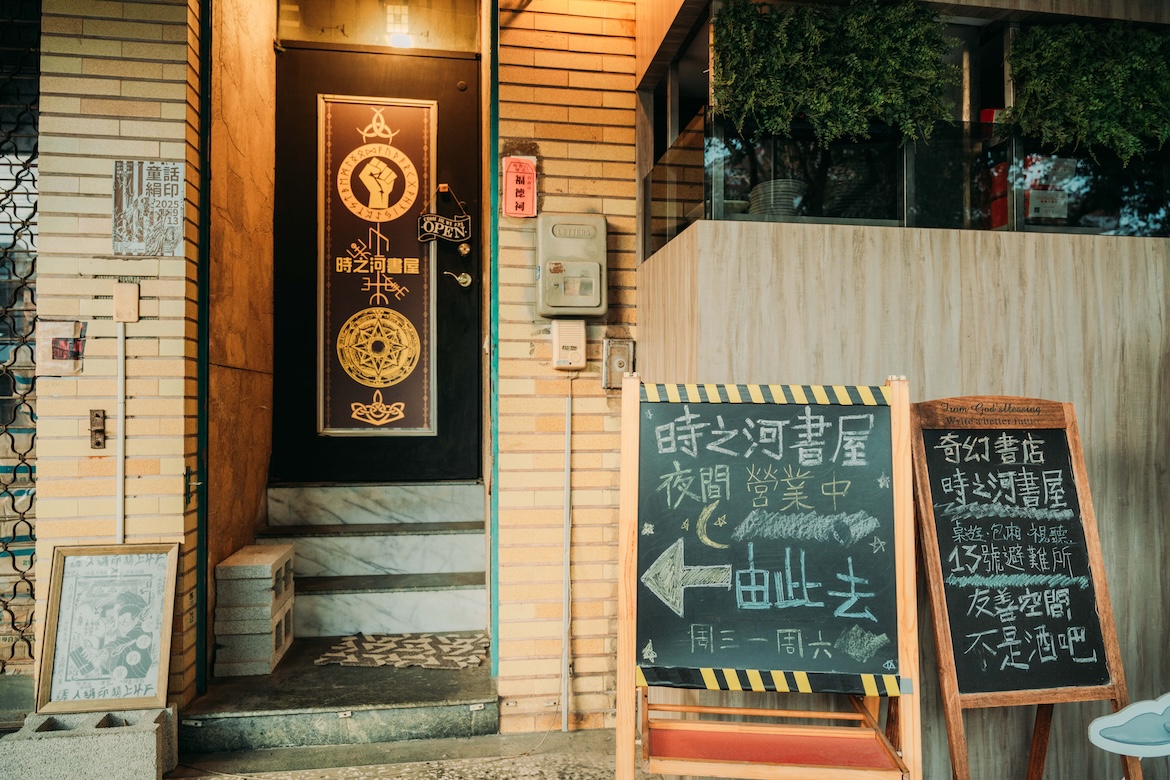 「時之河」流淌的是大航海時代的歷史與古地圖,「十三號避難所」則取自末日遊戲《Fallout》,書店從名字開始便是一場幻想與現實的混種。店主將對科幻、奇幻文學的熱愛,壓縮進這棟位於開山路的多層空間。從「逃避人生專用入口」的綠色店牌沿階而上到二樓,書牆映入眼簾,托爾金、艾西莫夫的經典與冷門歷史並列,一旁靜置著遊戲刀劍模型與厚重圖鑑,彷彿闖入某個探險家的私人書房。三樓是能隨意躺坐的休息室,人們在此討論劇情、玩桌遊或沉浸電玩世界。二〇一八年自安平起家,歷經搬遷,客群從觀光客轉向尋找真正同好。這裡的活動多數自製,風格異於臺南常見的藝文沙龍,吸引著遊戲迷、幻想文學愛好者以及渴望樂趣的年輕靈魂。