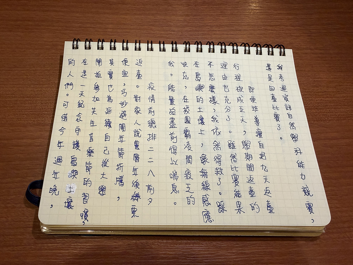 即便班導師擅自把九天返台行程砍成五天,學期間返台的理由也充分了。雖然比賽結果不怎麼樣,我依然覺得得救了。踩在島嶼的土壤上,像無線感應快充,在校園霸凌間疲乏的我,能量殆盡前得以喘息。