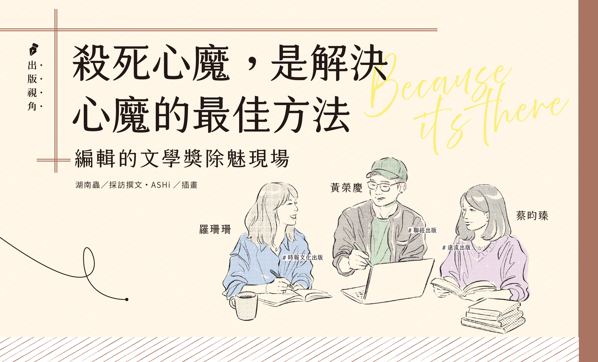 不像探險家喬治.馬洛里被問及為何要攀登聖母峰時的回答:「因為它就在那裡。」創作者參加文學獎,恐怕不只是唯物主義式的想靠近,更多是將它放大成一種象徵或肯定,甚至是通往出版的捷徑。但事實是如此嗎?文學出版的主編們,確實心心念念想著「誰登頂了?」接著就要遞出合約,恭喜成功作家嗎?實際的案例又是如何?