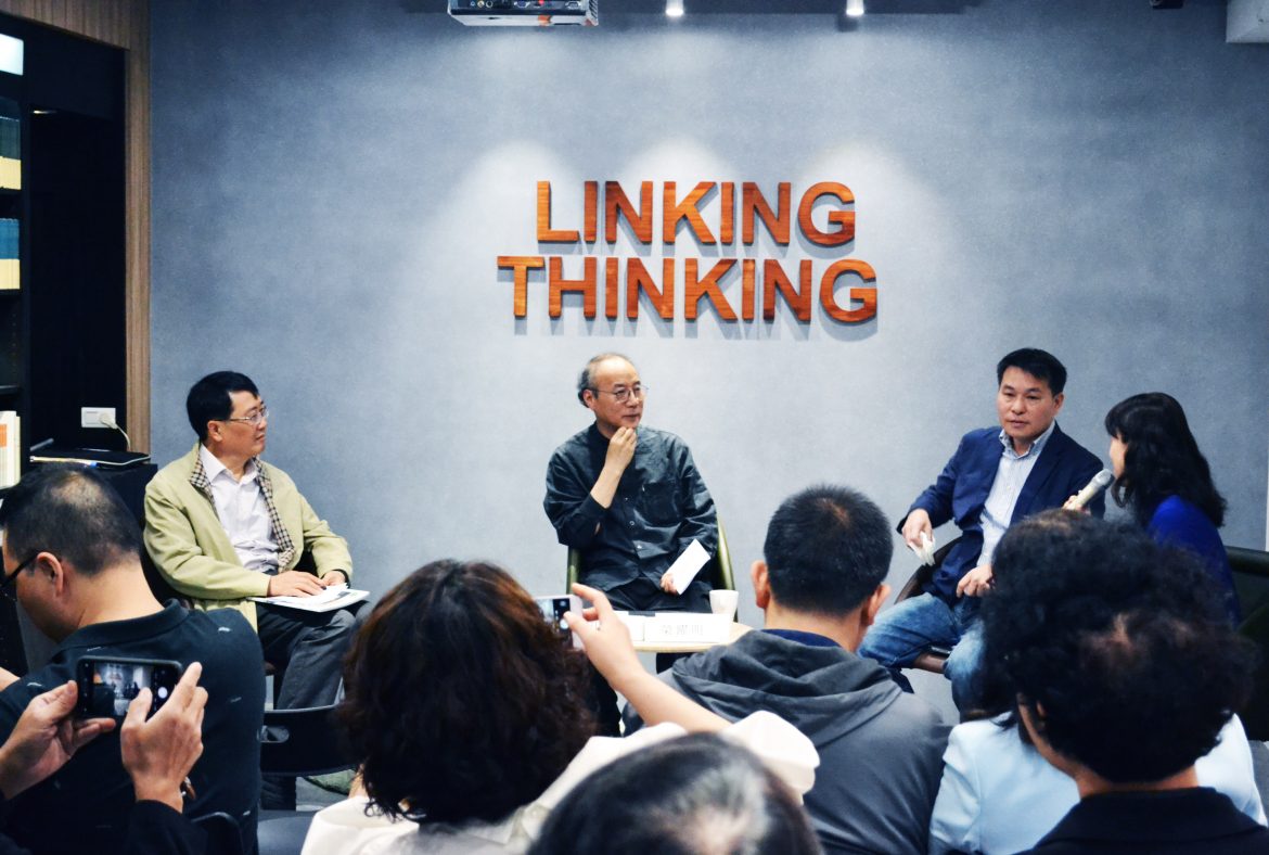 這場學術交流活動於聯經書房.上海書店舉行。上半場由社科院文學所所長榮躍明分享中國的文創產業發展趨勢,介紹大陸文創產業各領域的發展規模,及上海在其中的影響力。榮所長強調台灣在文創方面有著創意、人才佔比和國際經營水準的優勢,但市場規模小。若兩岸的優劣勢互補,可以共創雙贏。