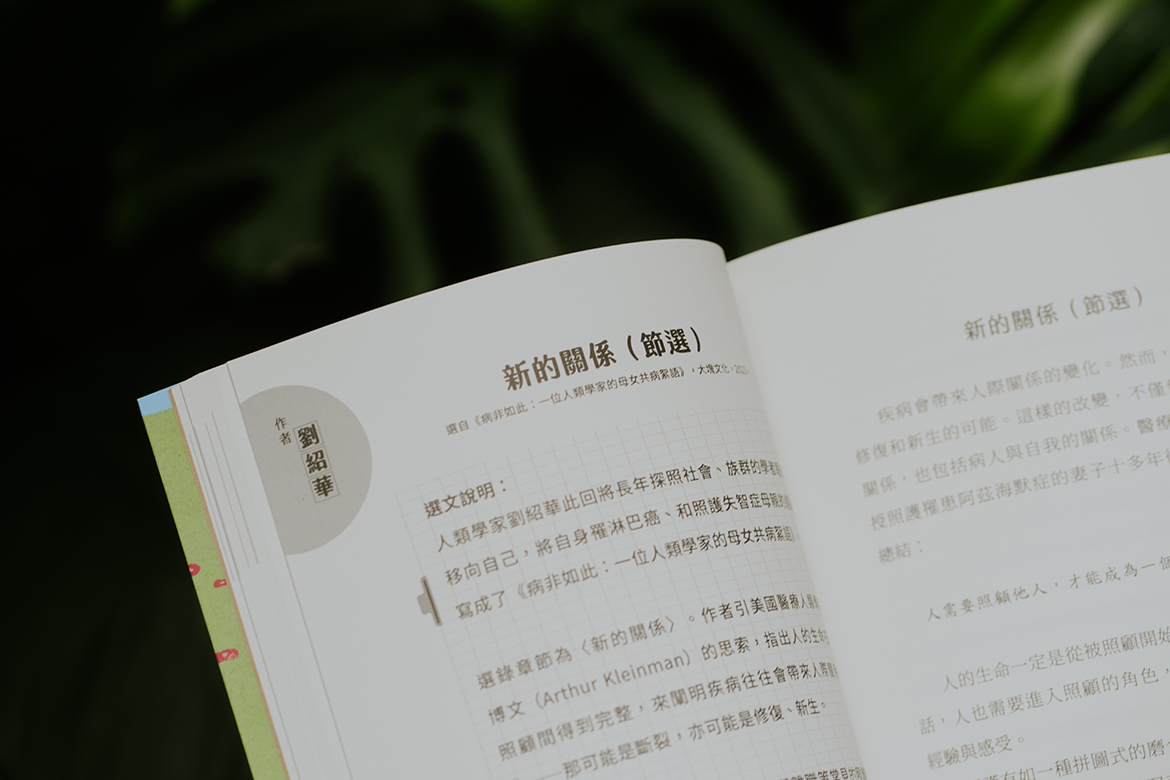 此外,我們邀請四位創作者——李家雯(海蒂)、李欣倫、左耀元與盧建彰,為長照的四個關鍵階段開立專屬文學書單,讓讀者在日常也能依循書單建議閱讀,找到支持的力量;並收錄首場文學沙龍的現場側記,捕捉作家與讀者在故事中同頻共振的瞬間。